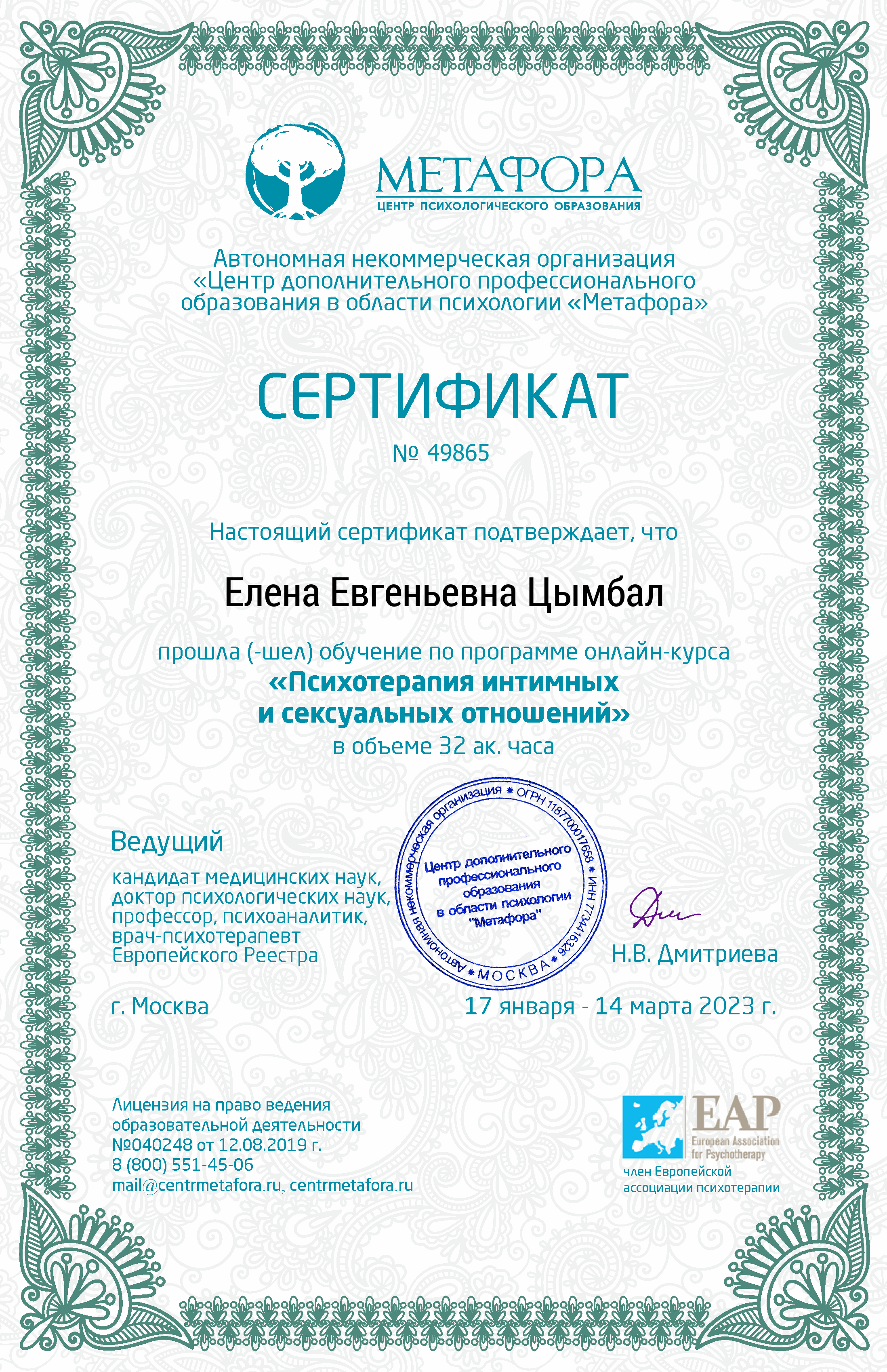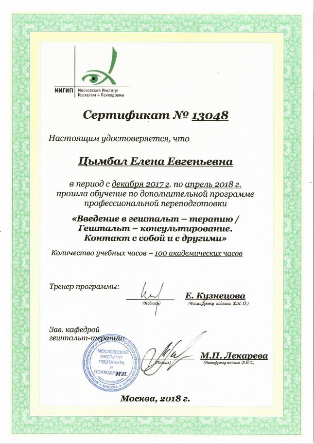 Постоянно повышаю свою квалификацию, прохожу личную и групповую терапию, профессиональные семинары, обращаюсь к супервизору.
