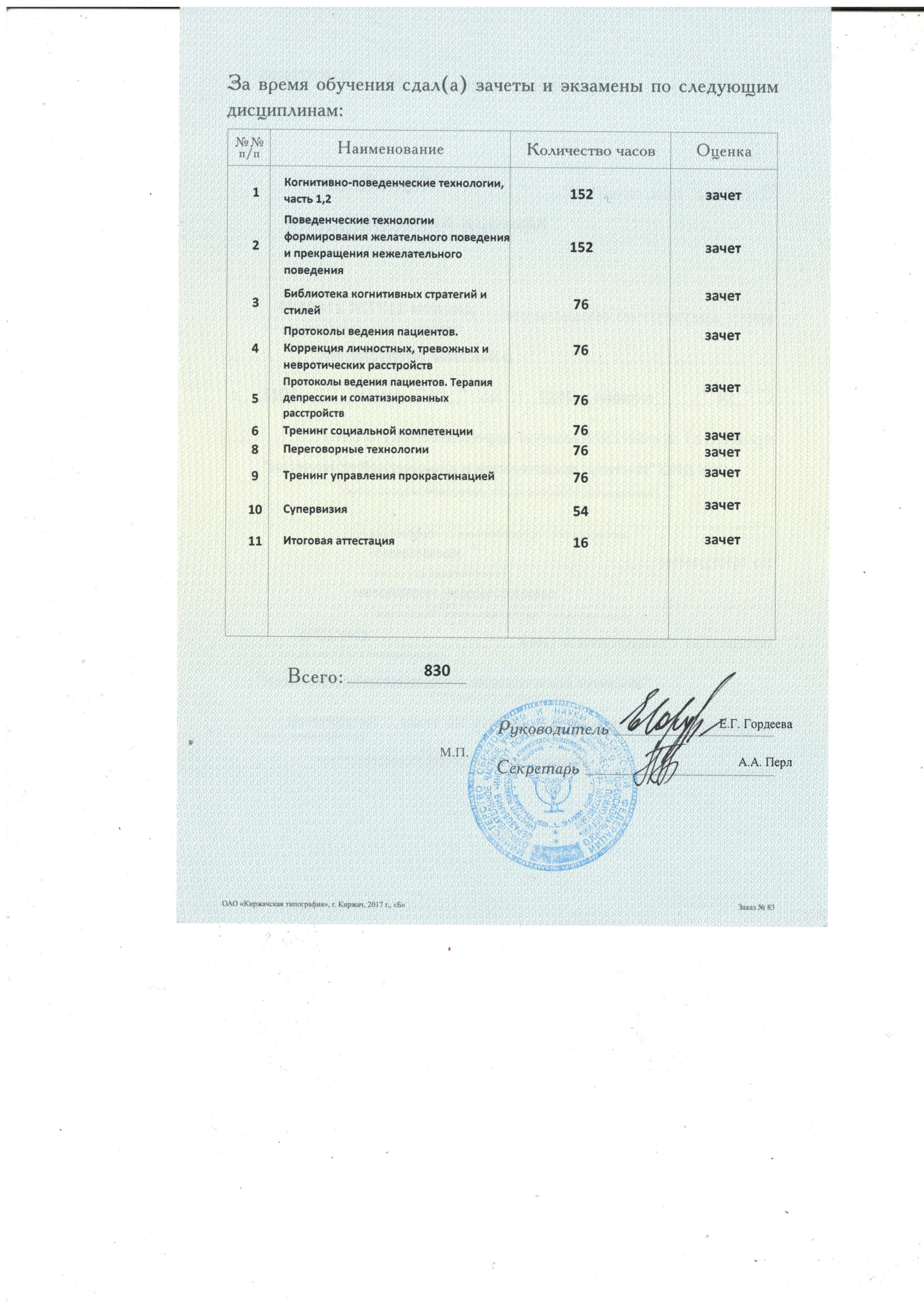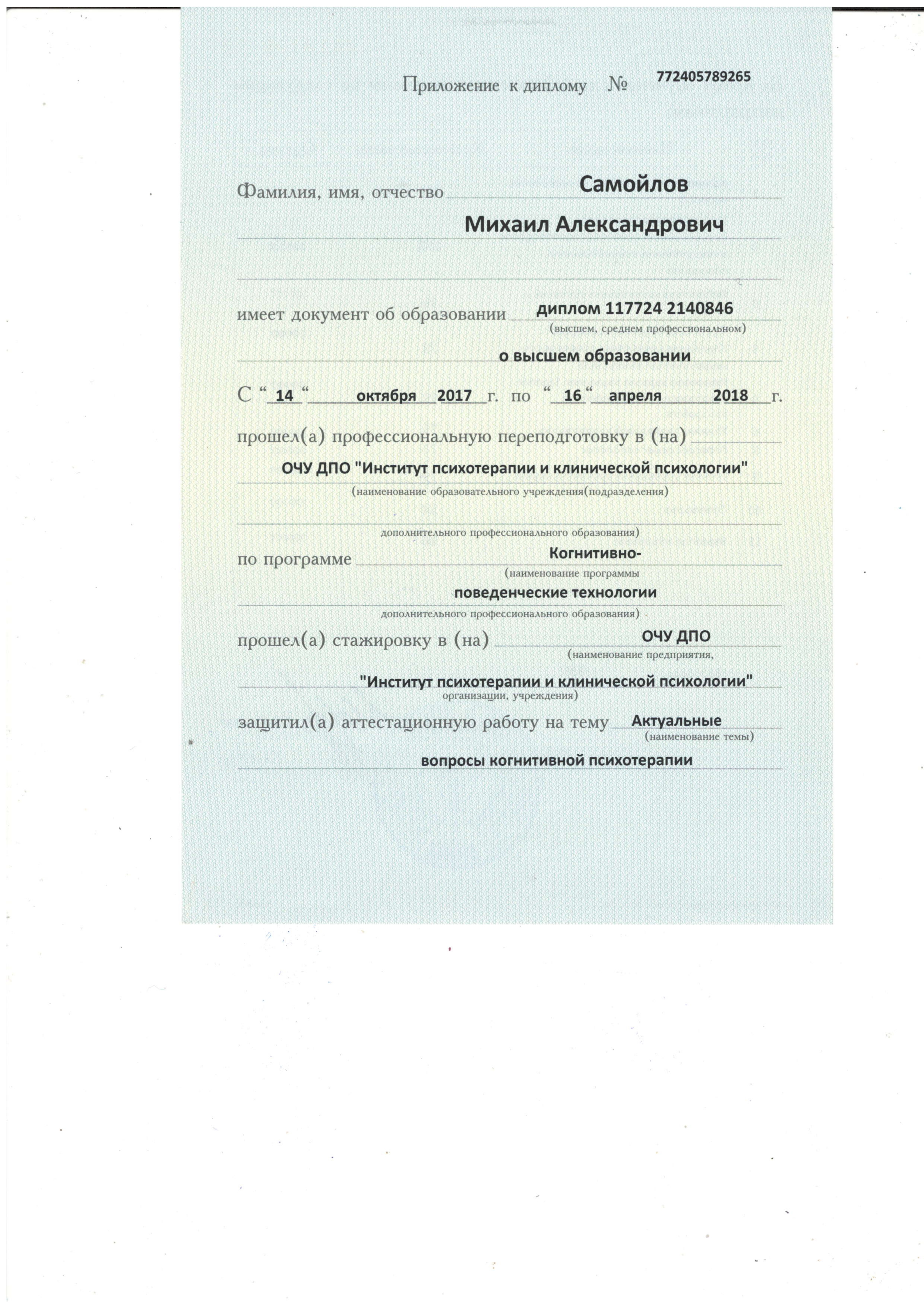 «Институт психотерапии и клинической психологии», факультет «Когнитивно-поведенческие технологии»