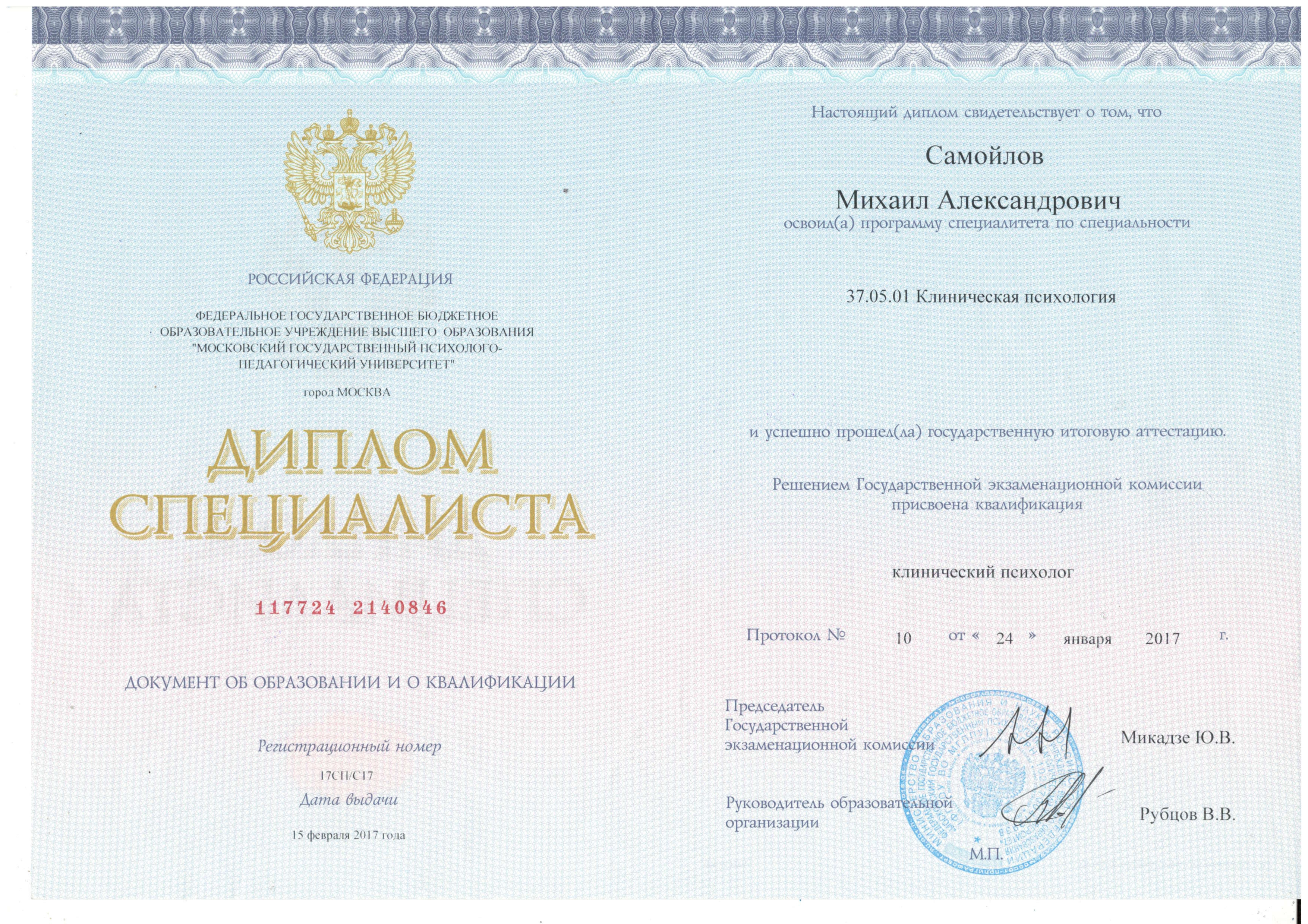 «Московский государственный психолого-педагогический университет», факультет «Клиническая психология», специалитет